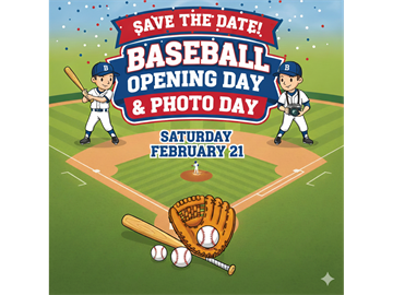 Join us for an unforgettable Opening Day filled with baseball, community, and family fun! Team photos will take place from 9:00–11:30 AM on Hausdorfer, and the Snack Bar opens at 9:00 AM with all your ballpark favorites. The Home Run Derby will run from 10:00 AM–12:30 PM on SP4 (Cheo), inflatables arrive at 10:00 AM, vendors begin setting up at 10:30 AM, and by 11:00 AM our vendor village will be live along with a DJ spinning music to keep the energy high. Teams will line up for the parade at 12:30 PM, with the parade taking place from 1:00–2:00 PM on Hausdorfer. Vendors will wrap up at 3:00 PM, and the Snack Bar will close at 3:00 PM as well.